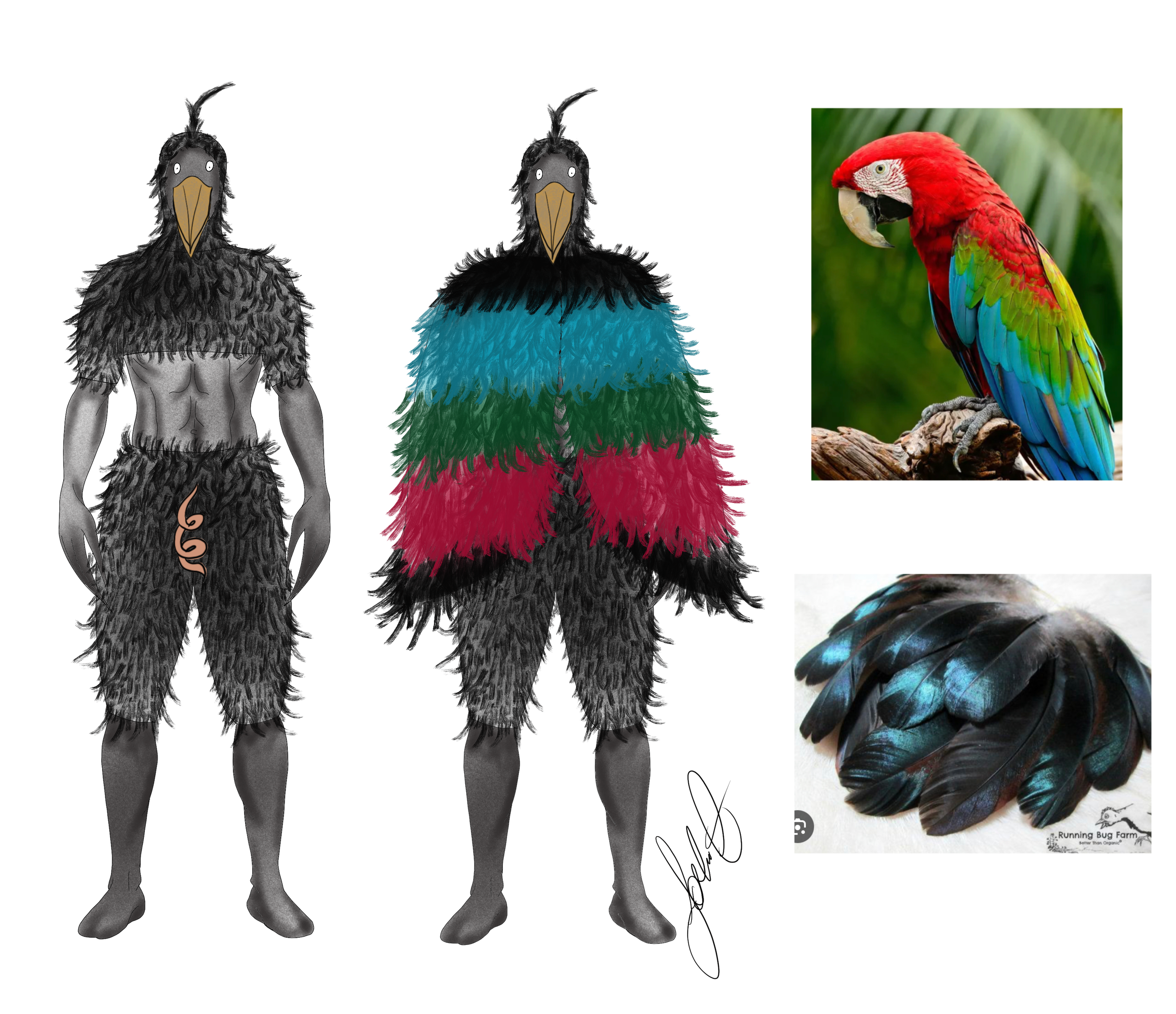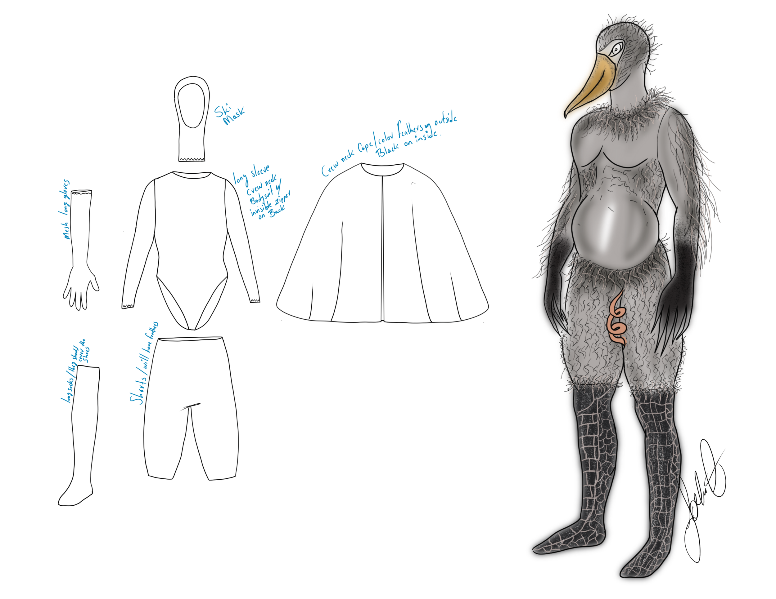 COSTUME DESIGN A BIRD LIKE OUTFIT, CREATED THE PATTERN AND FITTED TO THE ACTOR